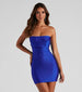 Get with the corset program! Sultry and stunning, this strapless mini dress is designed to awe featuring a cowl neckline atop a corset-style bodice with flexible boning inserts, a high waist seam, and a figure-flattering silhouette. Complete the look with a box clutch and rhinestone earrings.