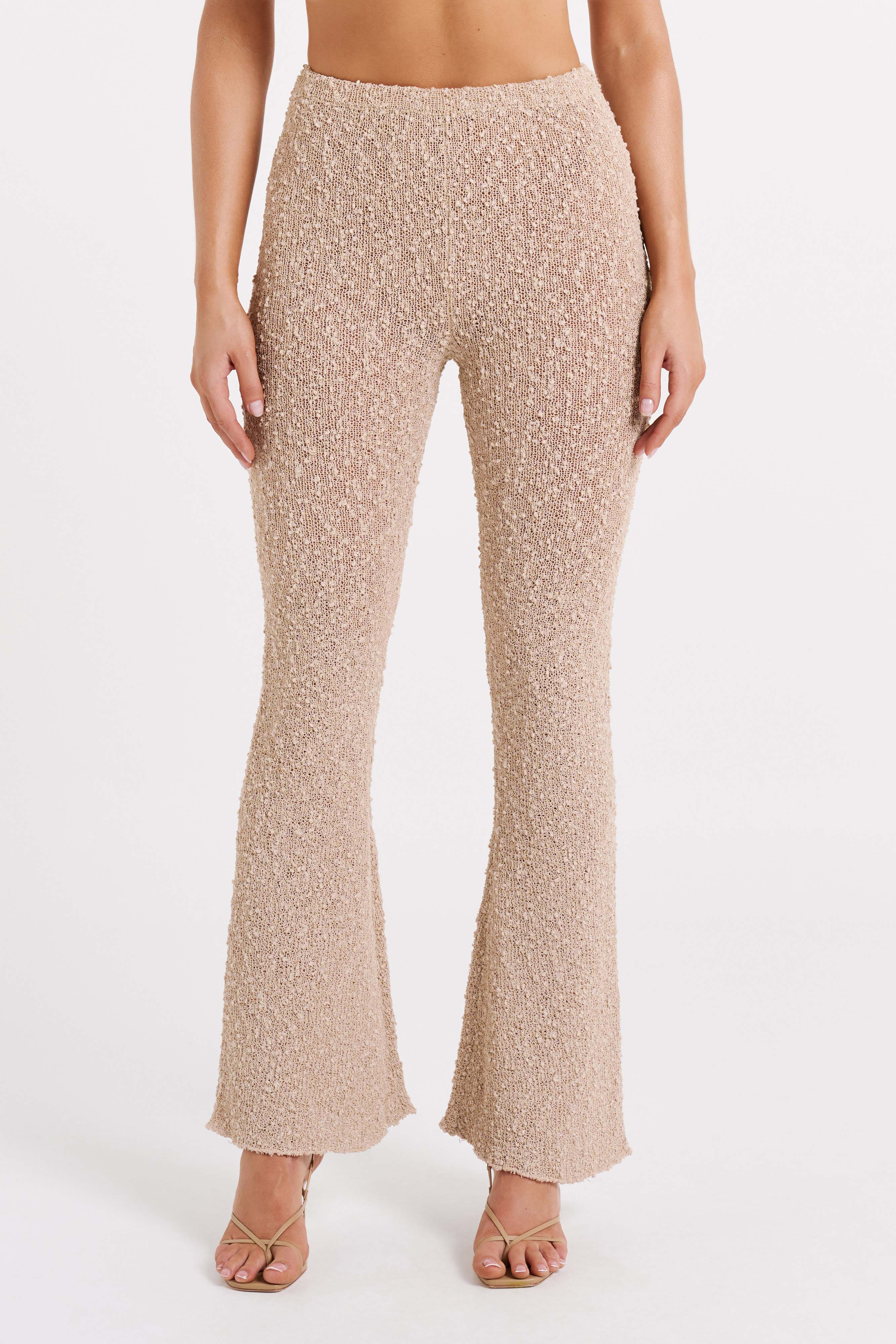 IRMA is a pair of flared pants featuring a high-rise waistline and a sleek floor-length design. These pants cinch you at the waist, creating an hourglass silhouette. It pairs perfectly with crop tops, tucked-in blouses, and everything in between. Crafted from soft and stretchy boucle material, these pants are not only stylish but also incredibly comfortable to wear. It's literally a dream to your skin! Wear it with the matchingIrma Strapless Boucle Top to complete the look.