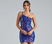 Catch the dance floor lights in the Karla sequin party dress and mesmerize the room in her dazzling arora! She features a sleeveless, one-shoulder design with an adjustable spaghetti strap, built-in padding, a bodycon silhouette, and a short hem. Composed of an iridescent sequin mesh-lined fabric with minimal stretch. Style with rhinestone earringsand heels.