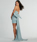 Dazzle from every angle in the sleek and stunning Marcy glitter mini party dress! Turn heads at weddings, school dances, and formal cocktail parties. She features a strapless, square neckline with non-slip grip lining, a hidden side zipper closure, and front and back pleat and ruching that creates the illusion of an hourglass figure. She stuns from the back with her flirty big bow tie with a dramatic train that glides against the floor. The formal dress is composed of a glitter woven fabric with a sewn-in knit lining and minimal stretch. Complete your dressy look in metallic heels and jewelry!