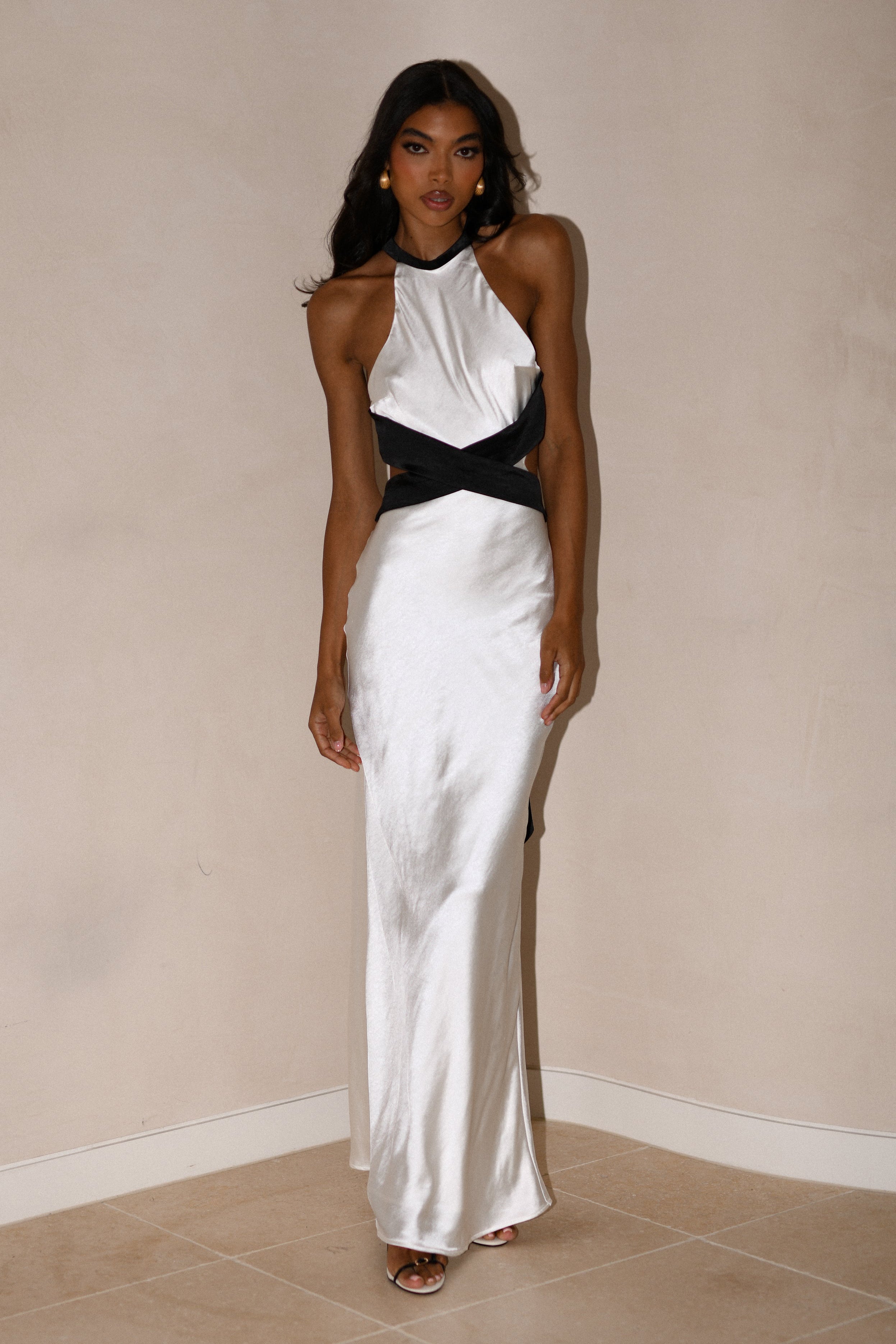 The NALANI is a striking satin dress, boasting a beautiful halter neckline with a twist-back detail. Not failing to highlight the waistline, the functional tie at waist lends to it a chic and feminine appeal. An invisible zipper has been thoughtfully installed on the centre back to ensure a seamless fit. The lined fabric provides a soft touch against the skin, while the bust darts enhance the overall aesthetics of the dress. Wear with the Dion Diamante Heel for a complete look.