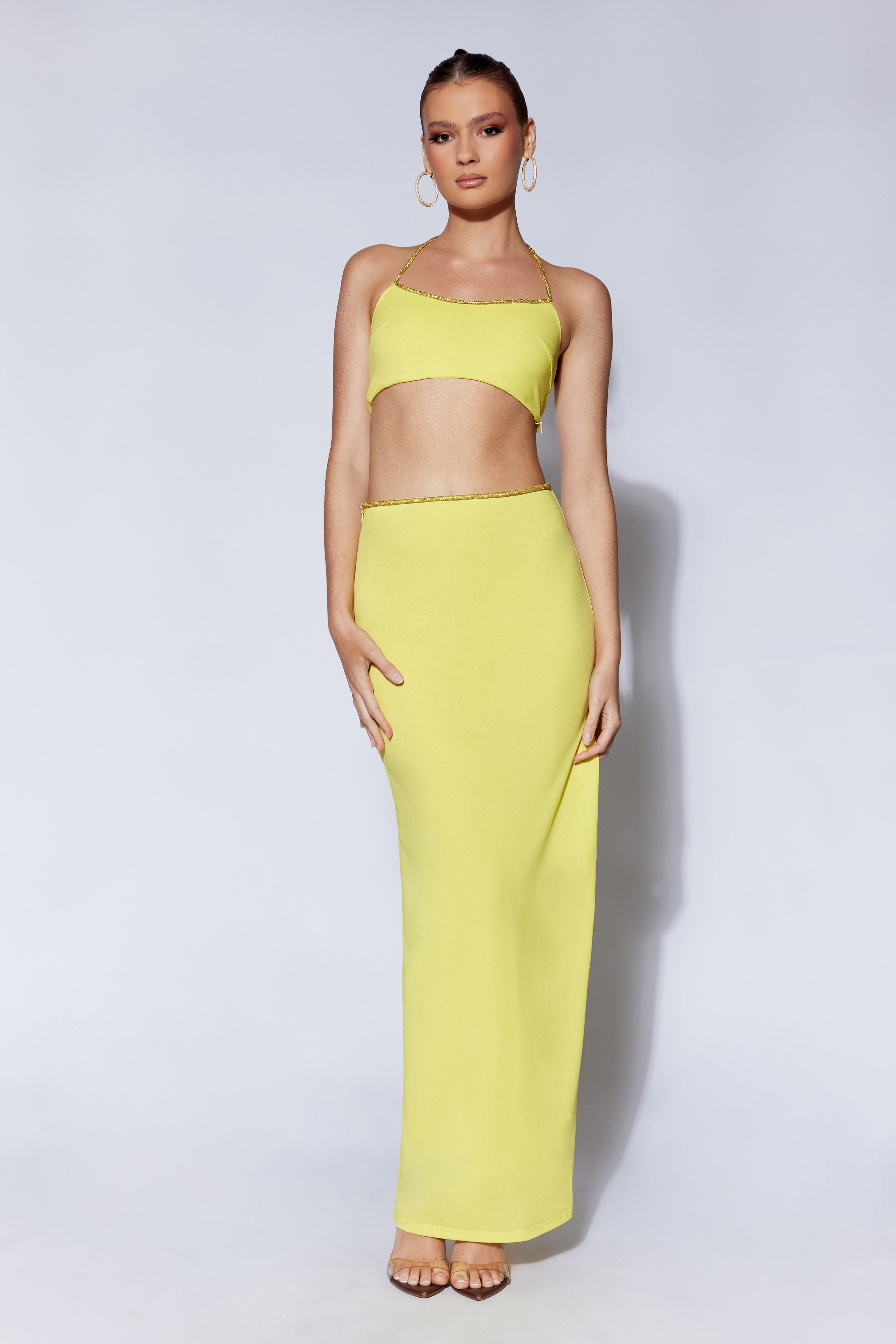 Sweeney Diamante Maxi Skirt With Split - Chartreuse